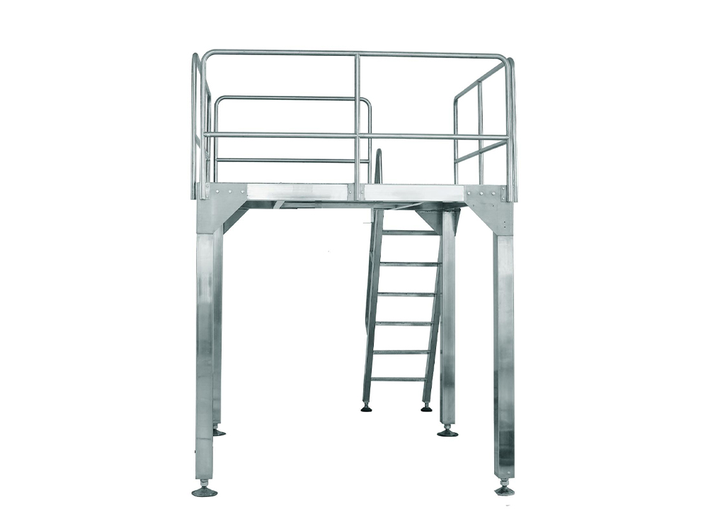 Fabricada en acero inoxidable apto para uso alimentario, la plataforma soporta la instalación y el funcionamiento de la pesadora multicabezal y facilita la alimentación y el funcionamiento manual.