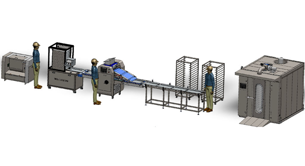 Alimenta automáticamente las bandejas de horneado a la máquina formadora de manera continua y ordenada, lo que garantiza la uniformidad del producto y reduce la mano de obra.