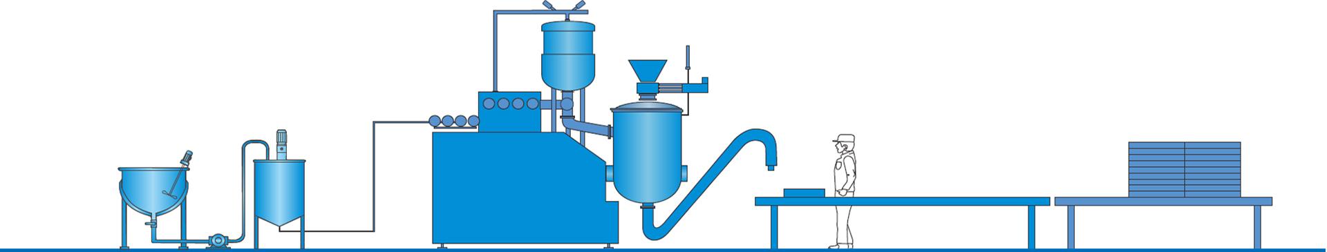 Esta línea de producción tiene la capacidad de elaborar una amplia variedad de toffees, tales como toffees de un solo color, dos colores, con rellenos, etc.